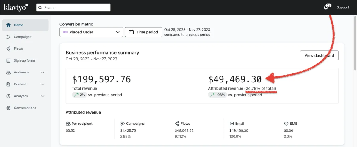 HOW WE DID IT: We worked with Klaviyo to build a dedicated IP. This massively improved deliverability. Then, we made an extensive build out of email marketing campaigns/flows. The client supplies the content, reviews the final drafts of emails, and meets with us to review the strategy.